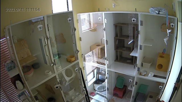 この画像は都内ペットホテル内の画像です。様々なペットをお預かりするため、常にペットの状態を把握する必要に迫られていました。この度、新型の防犯カメラと音声マイクを…